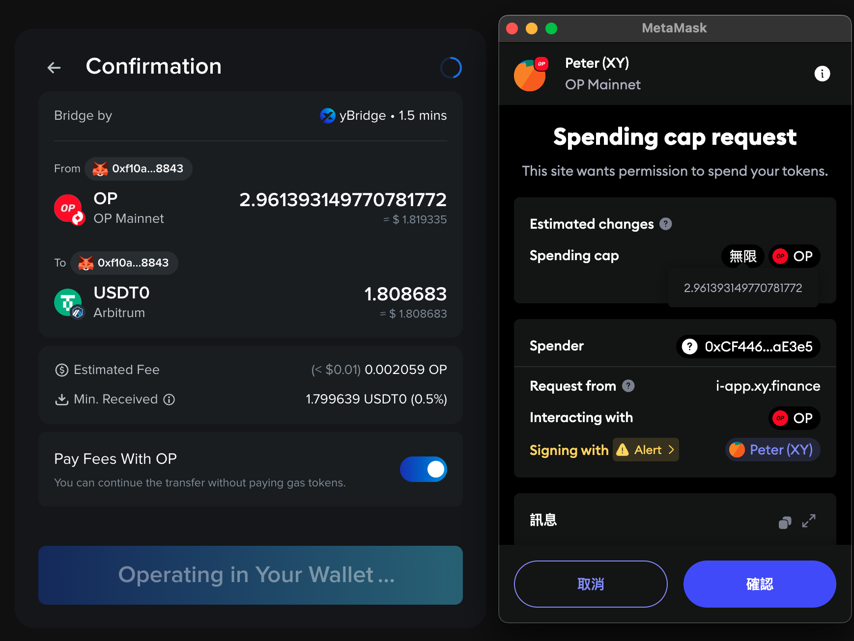Once the approvals are signed, your transaction will be sent on-chain for processing